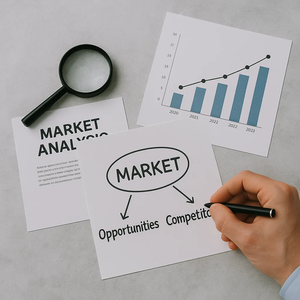 بررسی نیازهای مشتریان، روند تقاضا و رقبا حتی در سطح استارتاپها و صنایع کوچک و متوسط.